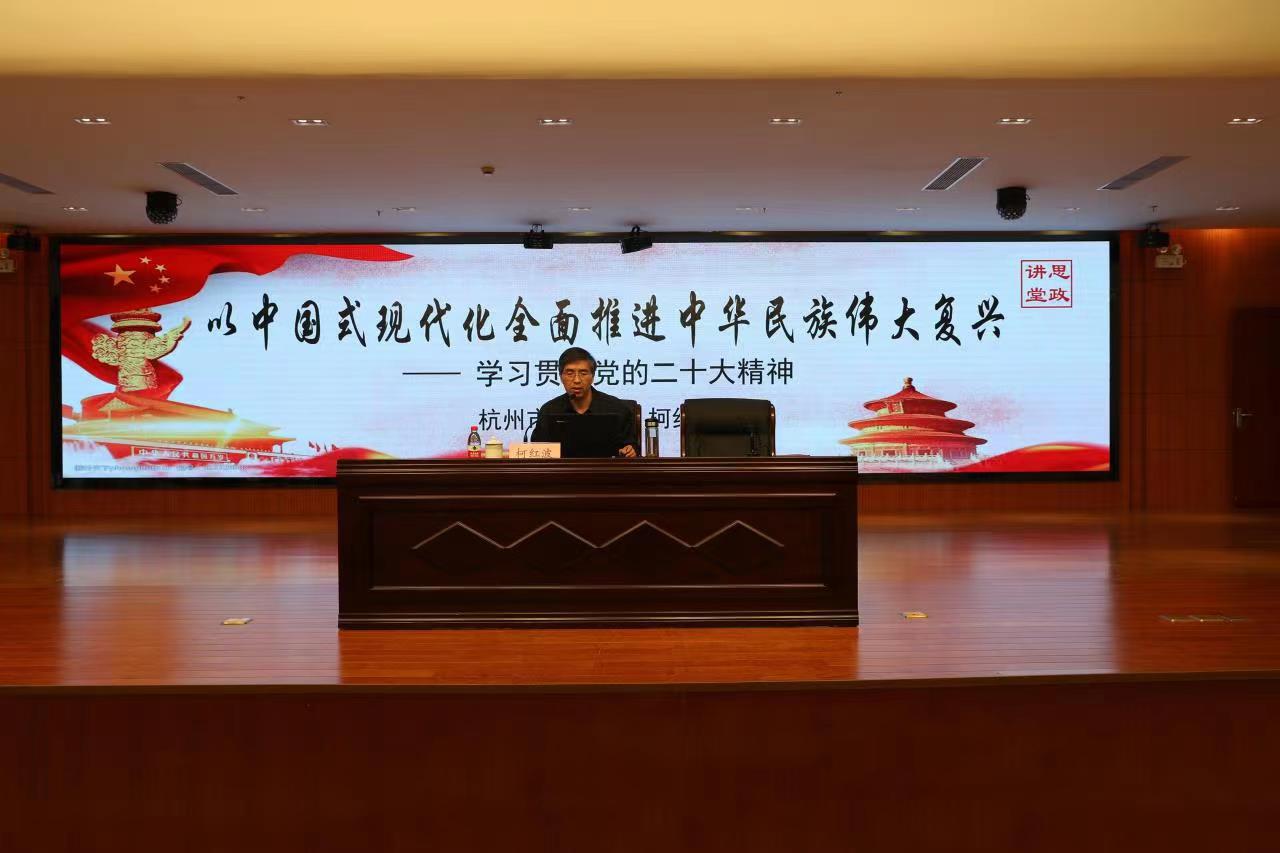 柯红波教授的讲座《以中国式现代化全面推进中华民族伟大复兴——学习贯彻党的二十大精神》为题,从逻辑框架:党的二十大报告分五大板块共十五章;现实基础:过去五年工作和新时代十年伟大变革;理论基础:开辟马克思主义中国化时代化新境界这三方面系统解读了党的二十大精神,通过大量生动的实例和详实的数据,进一步深化了大家对党的二十大精神的理解与感悟。