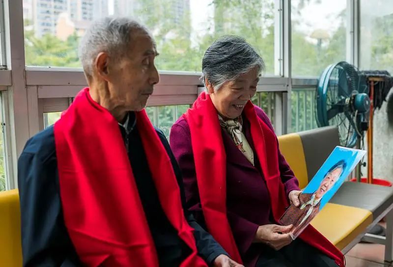 轮到拍照时,老人们都会梳梳头发,整理下服饰,一位老奶奶在椅子上坐下来准备拍照了,又觉得身上的衣服不够漂亮,特意回家去换了一件衣服再来拍。有些老人好久没有拍过照片,坐在镜头前还稍显紧张,在摄影师的提醒下,慢慢放松神情,努力定格自己最好的一面,拍摄现场一片欢声笑语。
