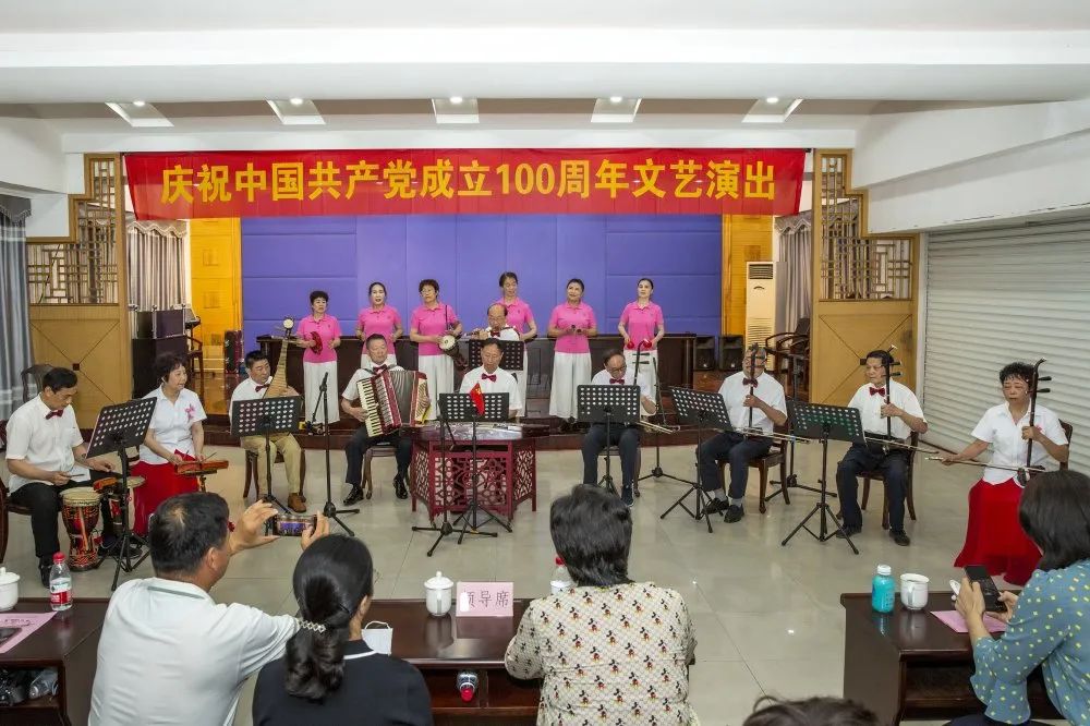 韩叶兴《党啊,我想对你说》,诉说着对党的深情;赵素娟弹词开篇毛泽东诗词《蝶恋花-答李淑一》,孙碧赢葫芦丝独奏《春满傣乡》、葫芦丝联奏《白毛女》、越剧联唱《党颂》、二胡齐奏《我的祖国》、王德爱萨克斯独奏《走进新时代》等各种形式的乐器节目轮番登场,精彩纷呈。他们满怀激情地歌唱党,从翻身做主,怀念领袖毛主席,到缅怀英雄,歌颂党的优良传统及带领全国人民走进新时代,走向共同富裕。