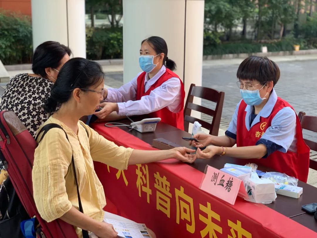 慢病康复管理现场,医务人员为前来问诊的师生们测血压、测血糖,同时围绕糖尿病、冠心病、高血压等常见慢性疾病的预防保健做了详细的宣教,将正确的慢性病管理理念传达给大家,帮助他们建立良好的健康生活方式。