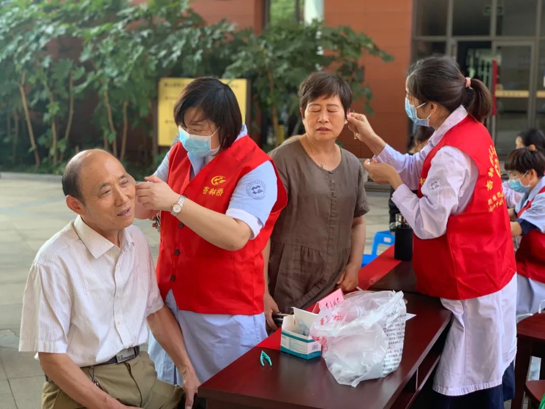 中医养生技术现场,广大师生们都跃跃欲试,纷纷去体验中医适宜技术的疗效,耳穴贴压、拔罐、刮痧等技术吸引了大家的逐项体验,中西医结合专科护士们的技术得到了师生们的一致肯定,也将现场气氛推向了高潮。