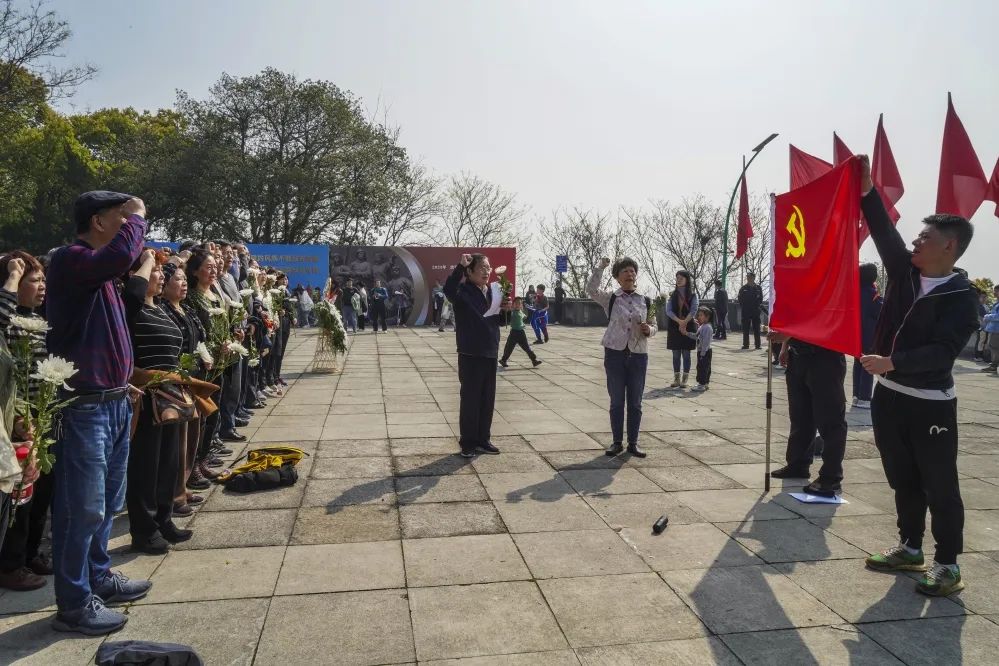 4月2日上午,雄壮的国歌声在萧山烈士陵园广场激情响起,令周边晨练的人们纷纷驻足观看。这是萧山老年大学临时党总支在这里举行的党员学员清明节“缅怀革命先烈 传承红色基因”主题党日活动的现场。