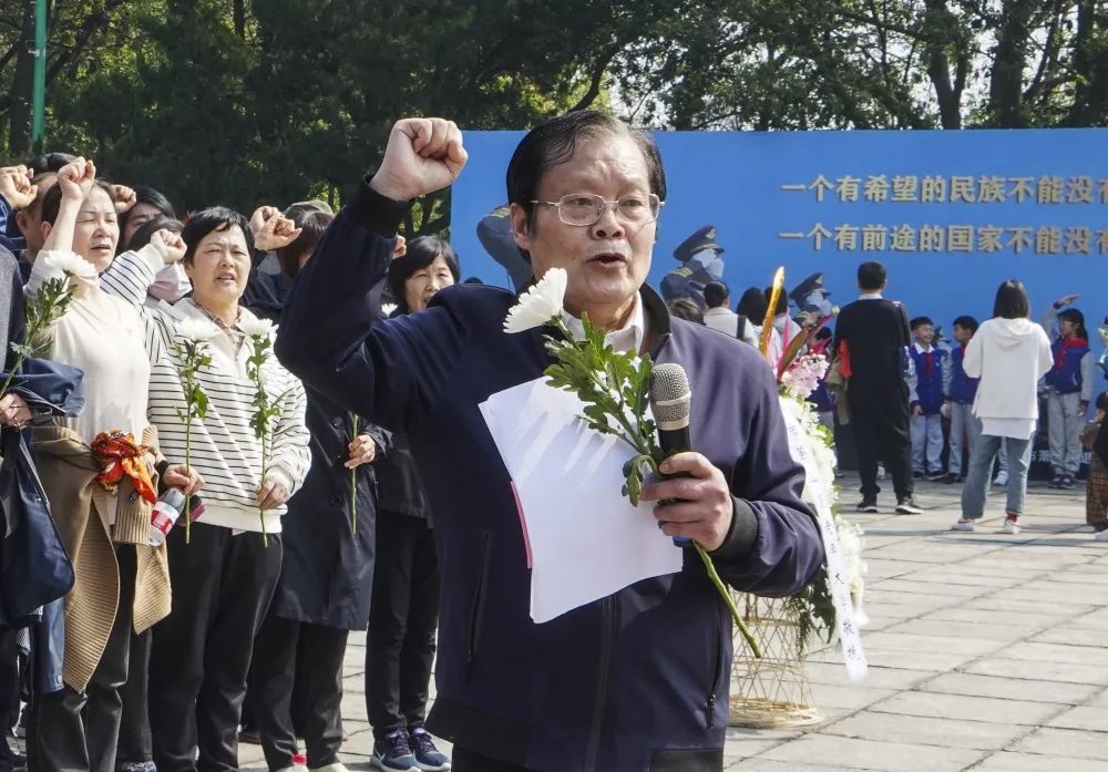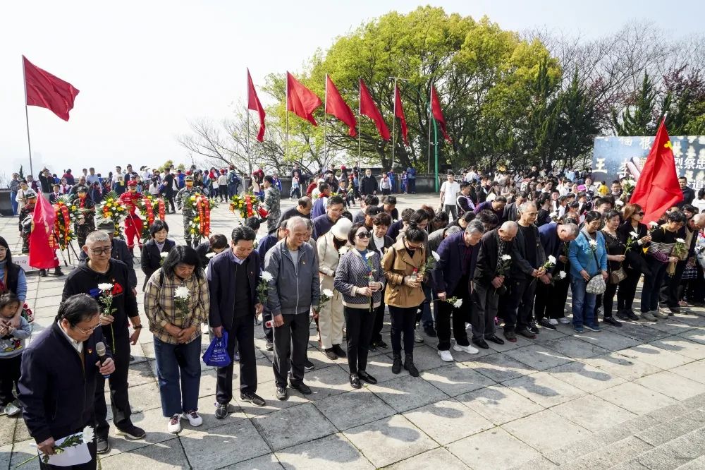 学校临时党总支书记詹漪君致词:“今天,我们怀着崇敬的心情,缅怀那些长眠九泉的革命先烈,虽心情沉重,但更多的是激励。正是因为有了英烈们为革命而献身,才有我们今天的幸福生活。萧山北干山烈士陵园,已经成为萧然大地的一处红色坐标。目前全区有252位萧山籍和在萧牺牲的烈士。每一条鲜活生命的背后,都是一个完美的家庭。然而,为了党的伟业,为了人民的利益,他们抛头颅、洒热血。今天,我们铭记历史,缅怀英烈,弘扬革命精神,为实现党的第二个百年奋斗目标而凝心聚力,有着非常重要的教育意义。”