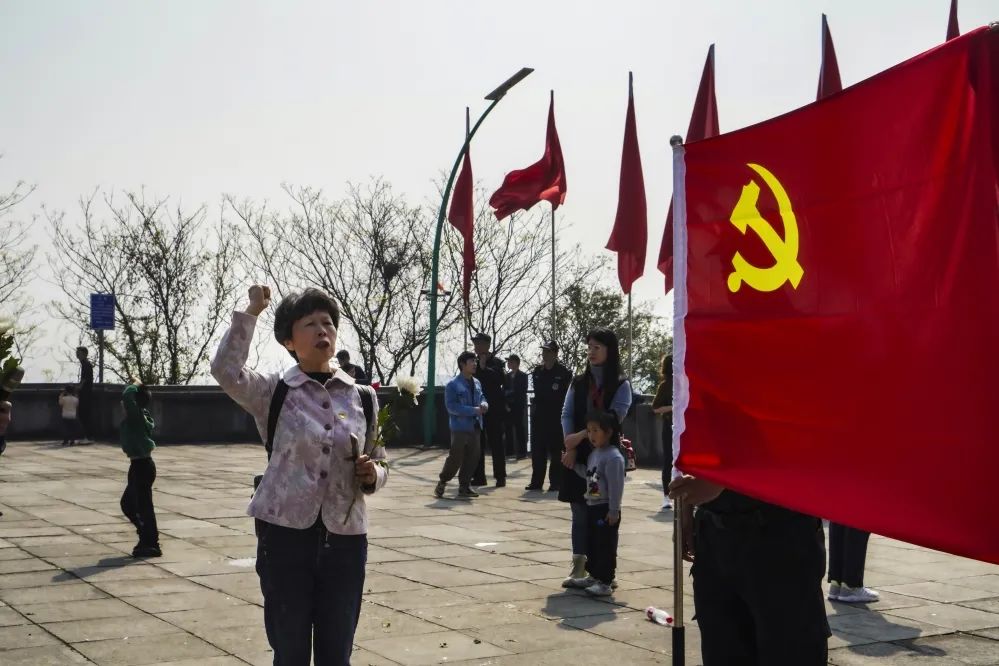 在烈士陵园现场,两位党员学员代表庄重地向烈士纪念碑敬献花篮,随着雄壮的国歌旋律响起,全体党员学员用铿锵而坚定的声音唱起国歌。随后,大家举起右拳,在老年大学临时党总支委员李凌峰的领誓下,重温“入党誓词”,再次感受初入党宣誓时的激动与喜悦。