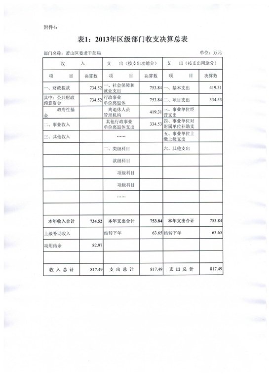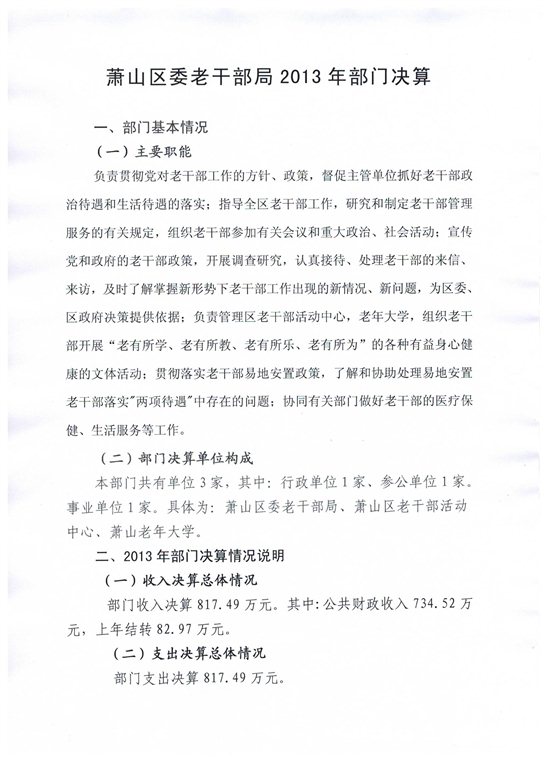 萧山区委老干部局2013年部门决算