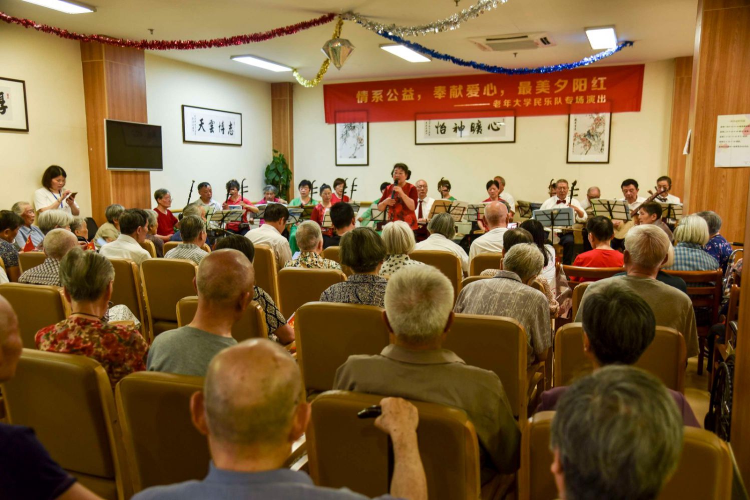来源:萧山老年大学 发布时间:2019-07-02为纪念中国共产党成立98周年,缅怀党的丰功伟绩,向党表达恩情,7月1日上午,萧山老年大学民乐队一行20余人,老年医院3位医生及报名志愿汇活动的3名志愿人士一起来到萧山开元之心颐养院,为在那里养老的近百位老年朋友送上了一台“情系公益,奉献爱心,最美夕阳红”的专场慰问演出。