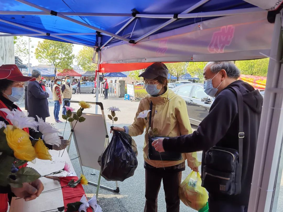为传承历史文化、弘扬传统美德、倡导现代殡葬文化理念,大力营造“移风易俗,文明祭祀,绿色清明,文化清明”的良好氛围,过一个健康、文明、绿色、低碳的清明节,4月3日,萧山区老干部志愿者联合会携手区民政局离退休干部党支部开展新时代文明实践活动——“破除陈规陋习,倡导文明新风尚”环保过清明宣传活动,为清明扫墓的市民免费赠送丝网花。