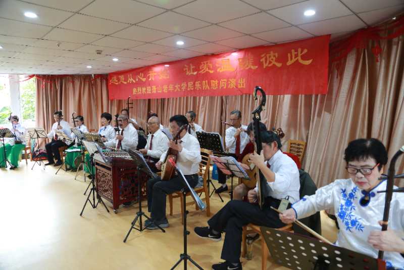来源:萧山老年大学 发布时间:2020-10-23为更好地弘扬中华民族尊老、敬老的传统美德,丰富老年人的精神文化生活,以实际行动为老人送温暖、献爱心,10月22日下午,萧山老年大学民乐队来到萧山颐乐园,为那里的老人献上了一台精彩的慰问演出。