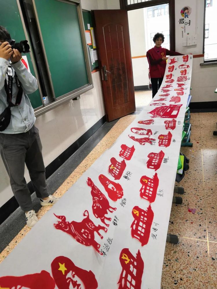 红船、天安门、毛主席头像、雷锋头像……在志愿者的认真教学下,孩子们用巧手将一张张普通的红纸变成了一幅幅承载着红色记忆的剪纸作品,用这种传统艺术形式表达对党和祖国的热爱。