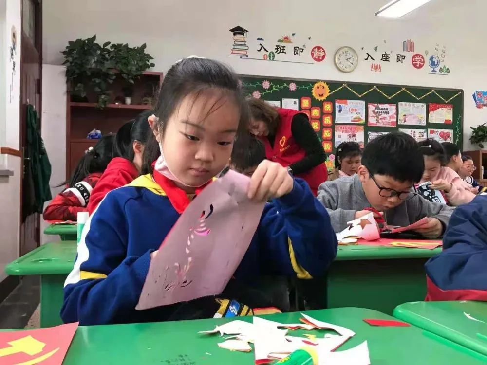 志愿者们从形象设计、叠纸要点、下剪角度等方面“大手教小手”,向孩子们详细讲解、示范剪纸的技巧。孩子们不仅感受到非物质文化遗产的魅力,也深入学习了党史故事背后蕴含的红色精神。