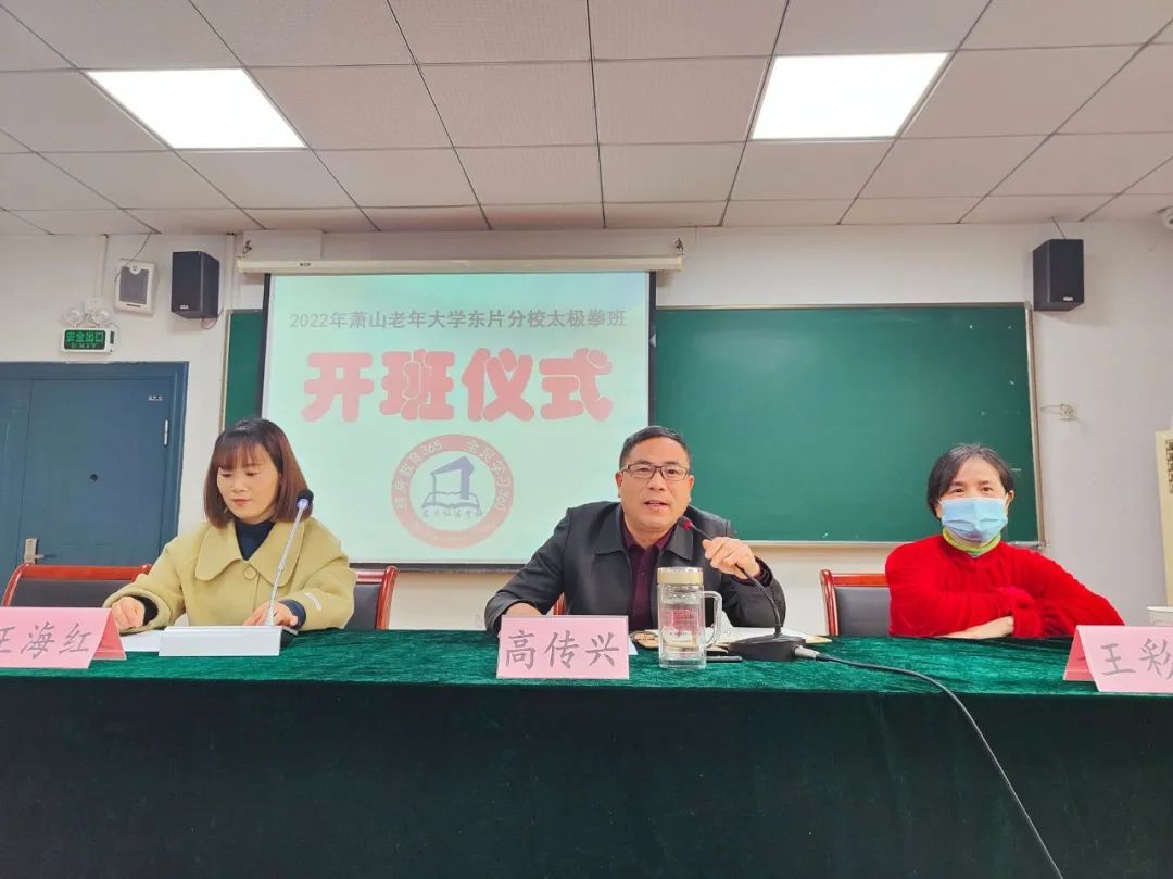 3月1日,萧山老年大学东片分校2022年太极拳班正式开班。东片社区学校副校长、萧山老年大学东片分校校长高传兴、萧山区资深教练杨氏太极拳第七代传人王彩琴出席开班仪式,25名学员参加,社团指导部副主任王海红主持会议。