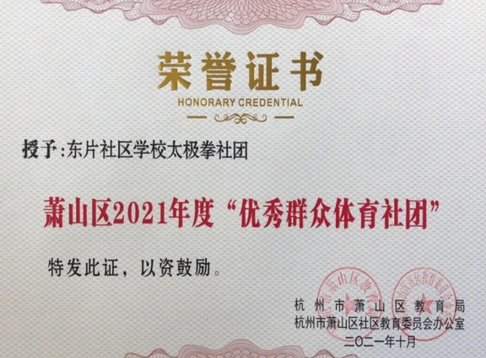 通过建立班级学习交流群、非教学时间开放培训场地、配备助教老师、开展学员间互助学习等方式,把每一个老年教学班转型成学习共同体,满足老年人自愿参与、自觉学习、自我提高、继续学习的要求。2021年,三围村夕阳红班被评为“浙江省老年教育优秀社团”、沙地太极拳班被评为“杭州市示范社区学习共同体”、“萧山区优秀群众体育社团”。