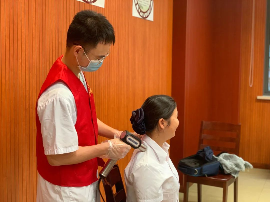 中医养生技术现场,广大师生们都跃跃欲试,纷纷去体验中医适宜技术的疗效,耳穴贴压、拔罐、刮痧等技术吸引了大家的逐项体验,中西医结合专科护士们的技术得到了师生们的一致肯定,也将现场气氛推向了高潮。