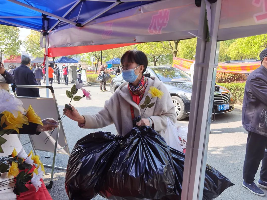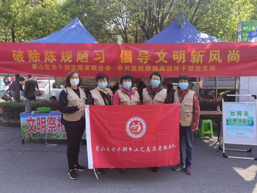 为传承历史文化、弘扬传统美德、倡导现代殡葬文化理念,大力营造“移风易俗,文明祭祀,绿色清明,文化清明”的良好氛围,过一个健康、文明、绿色、低碳的清明节,4月3日,萧山区老干部志愿者联合会携手区民政局离退休干部党支部开展新时代文明实践活动——“破除陈规陋习,倡导文明新风尚”环保过清明宣传活动,为清明扫墓的市民免费赠送丝网花。